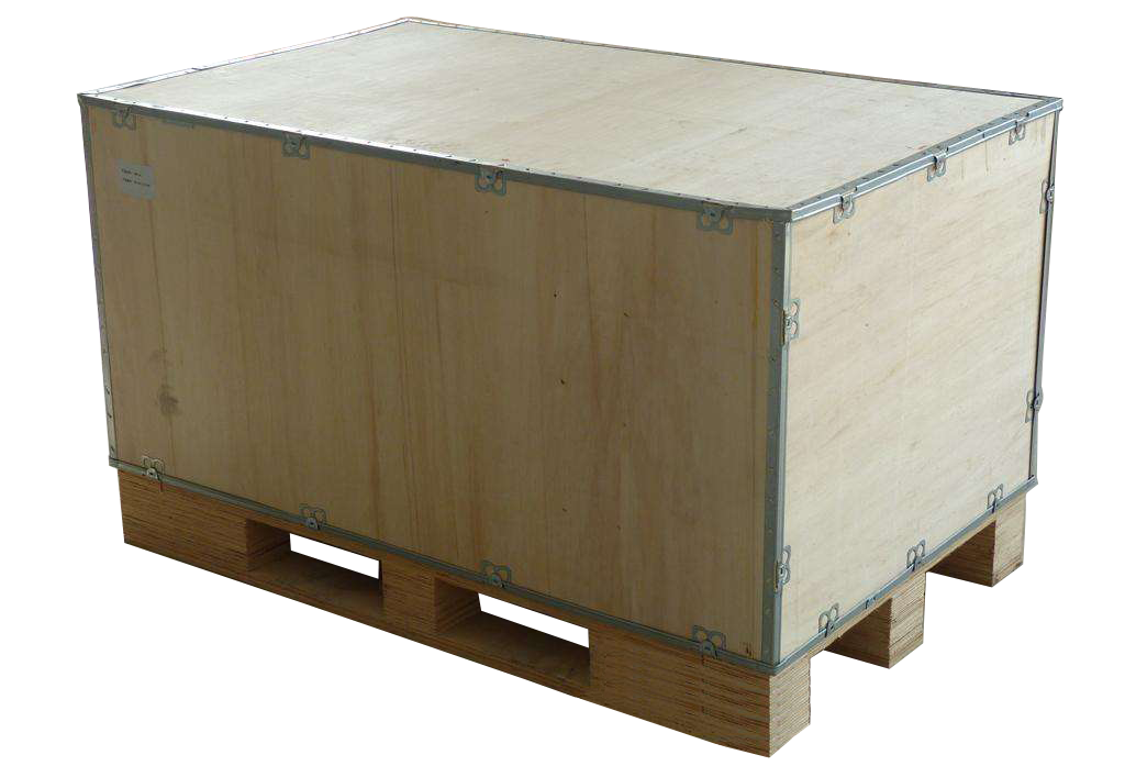 可拆卸木箱:包括托盘、箱体(由左右前后面板组成)、箱盖,钢带固接于相邻的两片木板的角部。木箱特点:外观漂亮,结实耐用,内销出口都可用,而且尺寸可以按客户要求生产。